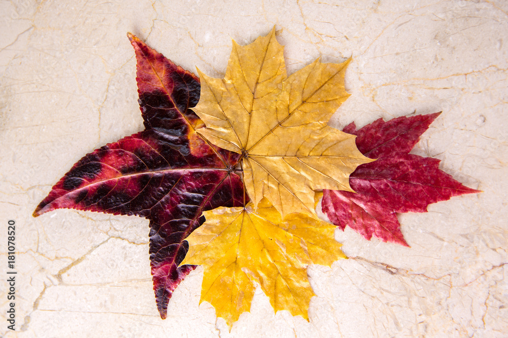 Yellow & Red Preserved Fall Leaves on Marble Tile