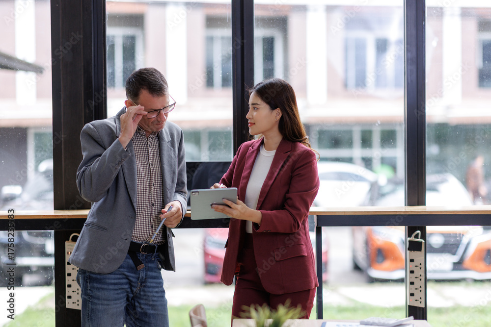 Woman typing on laptop, leaning forward at home on glass table near orange cushion, copy space