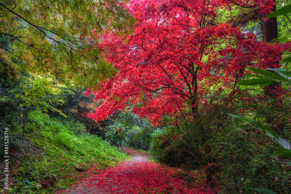 Red tree in autumn park