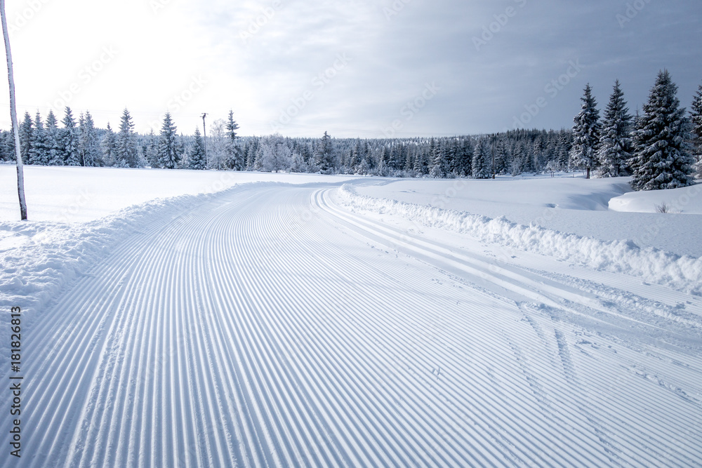 Winter mountain landscape with cross country skiing trails, Jeseniky mountains, Czech Republic