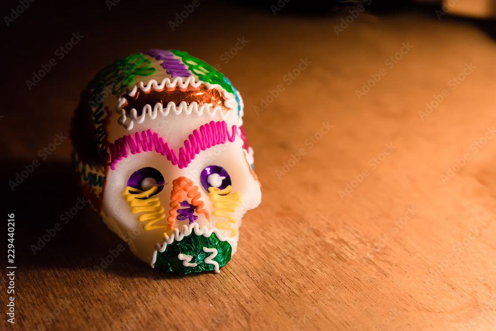 Blurred view of bright Christmas lights on dark background, bokeh effect. Space for text