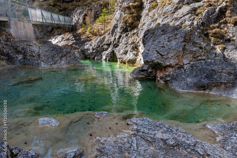 Beautifully colored, speckled pumpkin resting on a rustic bale of straw with wooden crates and green growth