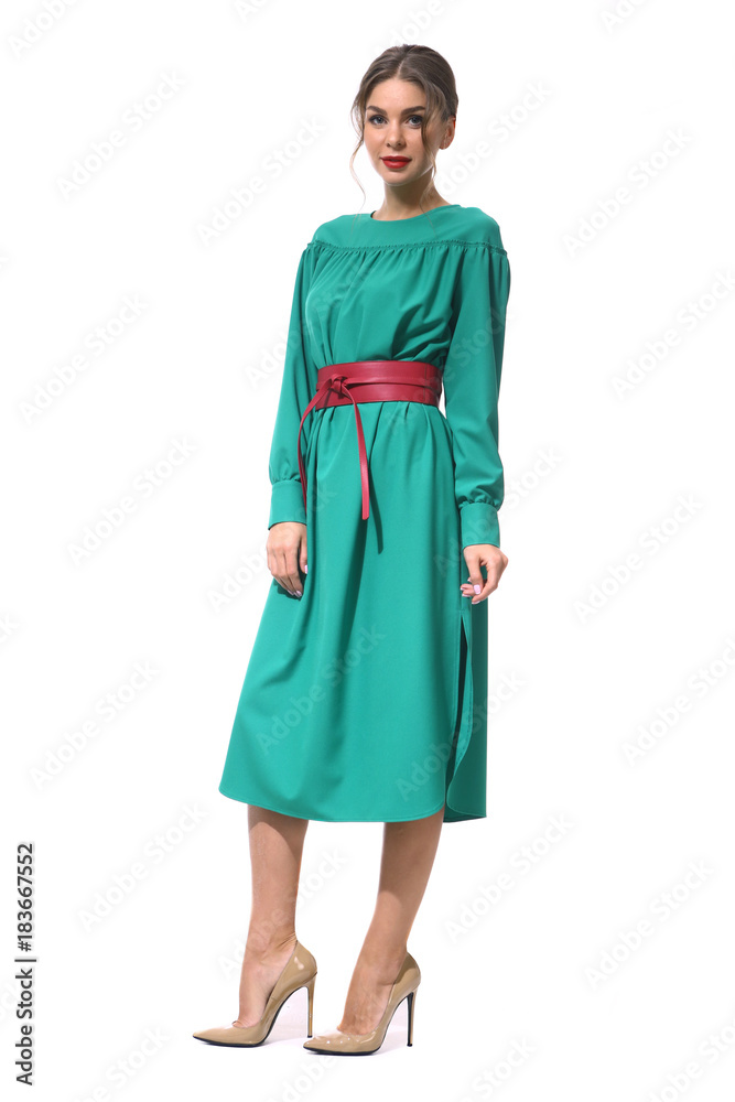 clerk manager business woman in formal green party dress s