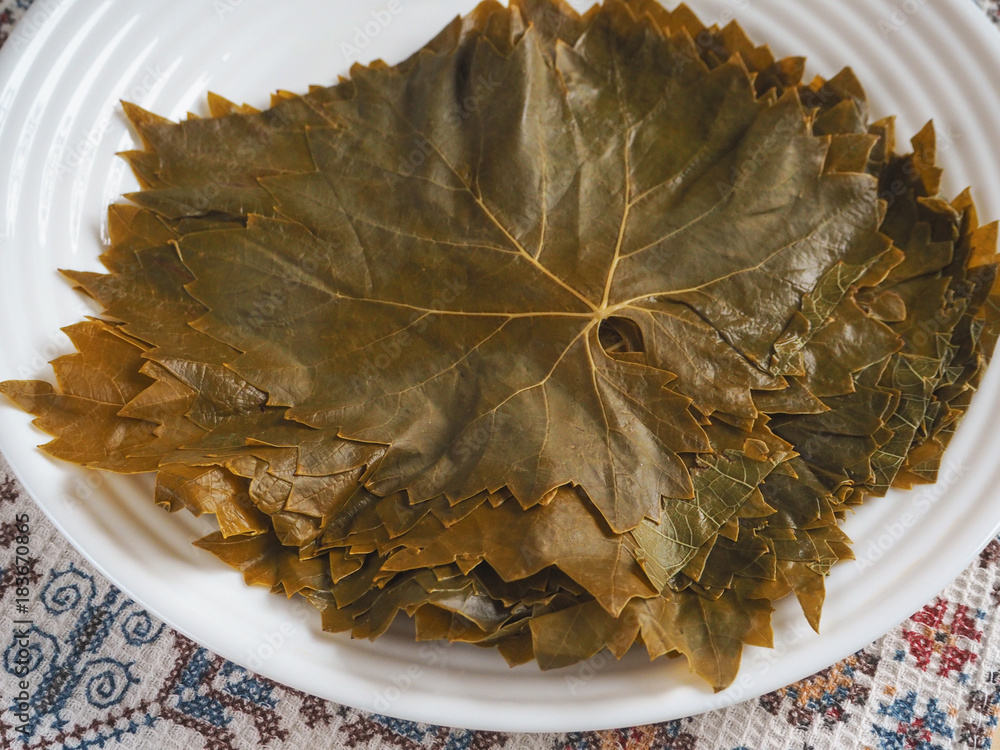 Pickled grape leaves for dolma.