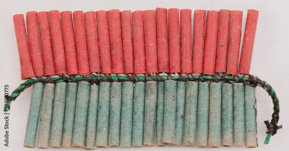 Knallkörper und Feuerwerk auf weißen Hintergrund fotografiert