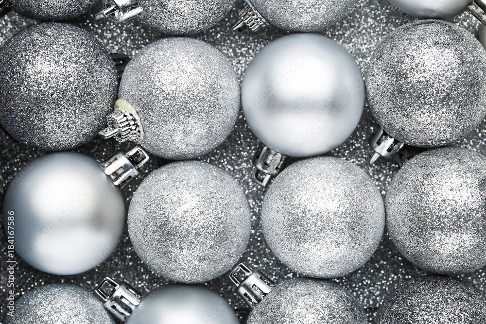 Silver christmas baubles background