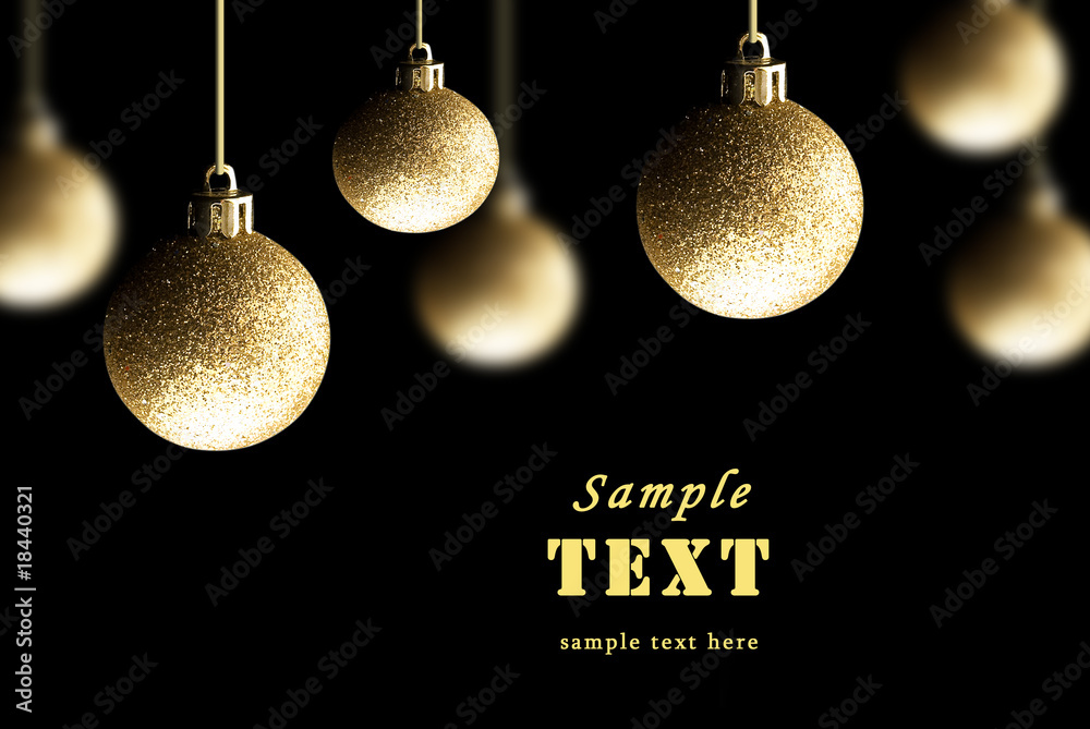 Gold Christmas balls on a black background