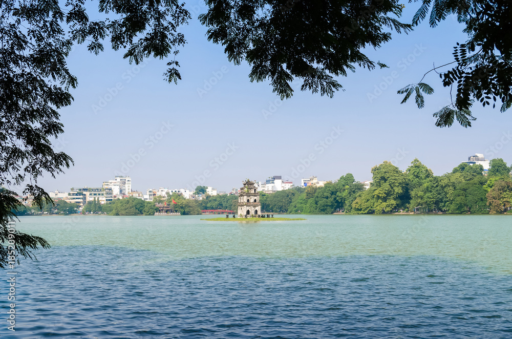 Turtle Tower or Tortoise tower which is located in the middle of the Hoan Kiem Lake. Hoan Kiem Lake meaning "Lake of the Returned Sword".