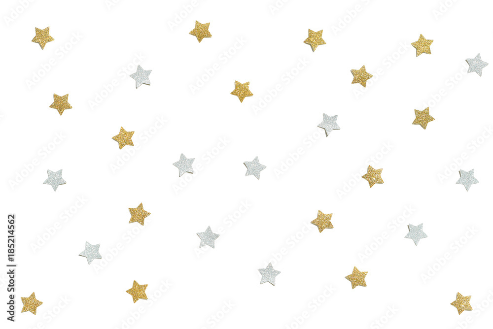 Gold and silver glitter star paper cut on white background - isolated