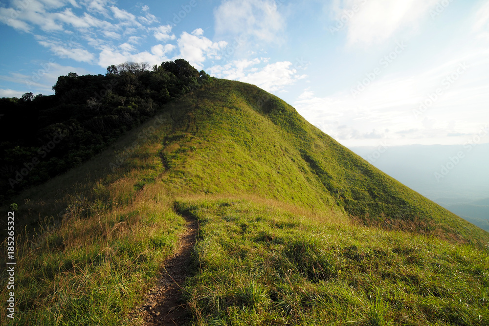 Small walking path to the top of green grass mountain at Doi Luang Tak, Tak province, Thailand
