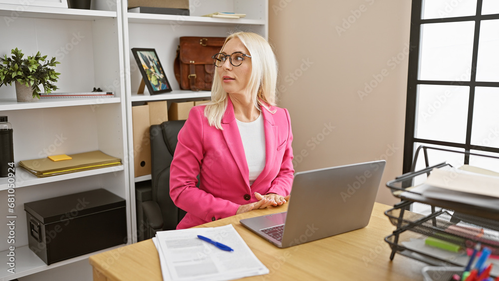 Young woman wear orange casual clothes hold cover mouth with bunch of lettuce salad look aside on area isolated on plain beige background. Proper nutrition healthy fast food unhealthy choice concept.