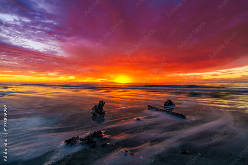 Beach littered with plastic waste, shells, and debris highlighting environmental pollution issues