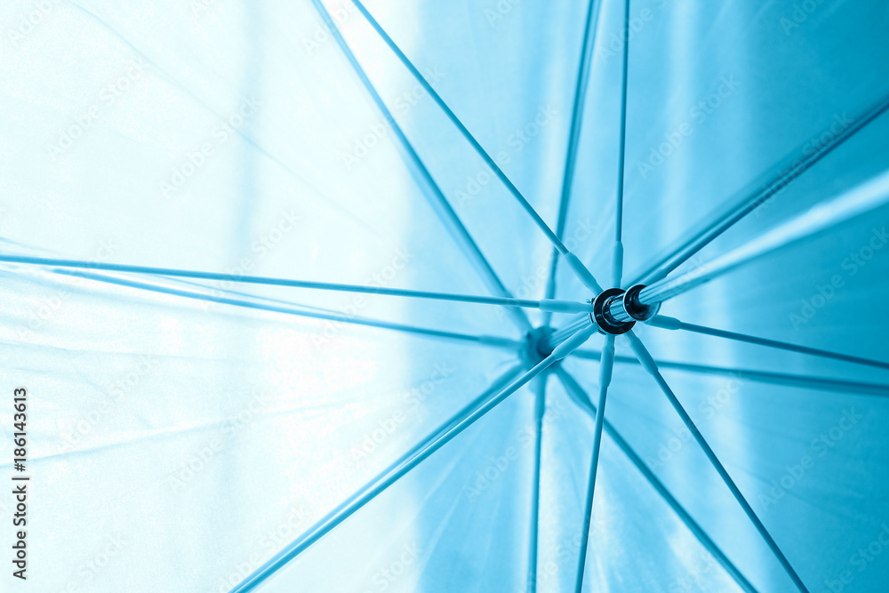 blue abstract background, umbrella spokes, rays. Concept for computer background