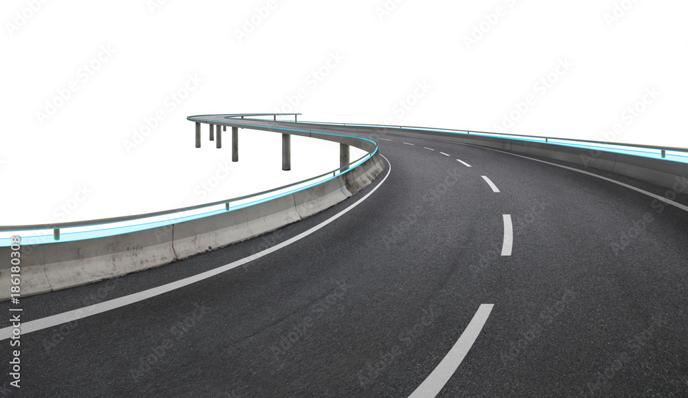 Blue neon light design highway flyover isolated on white background with clipping path .
