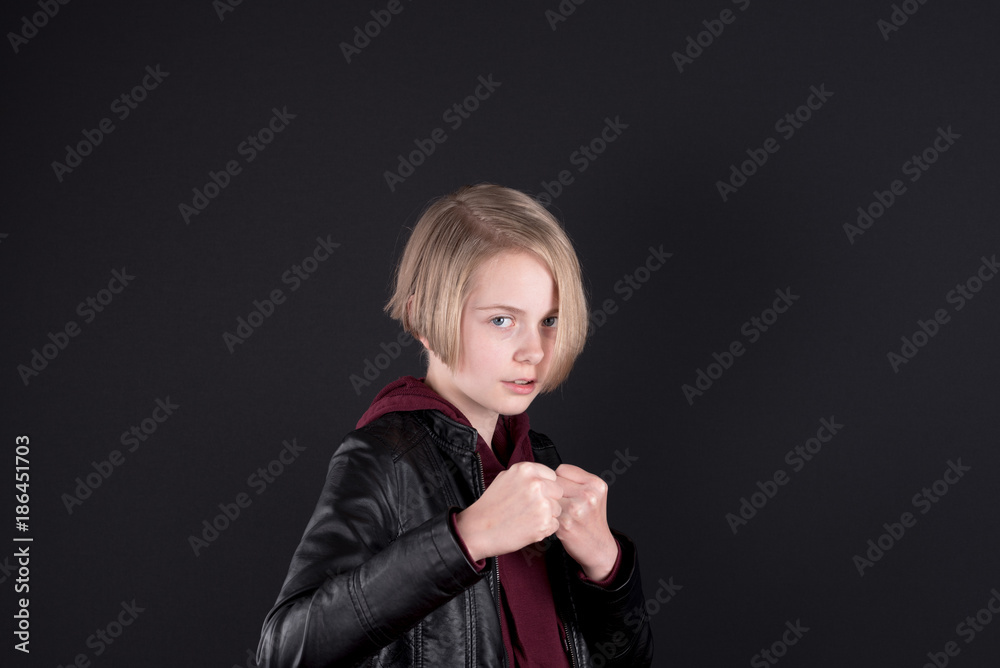 Mädchen mit Fäusten bei der Selbstverteidigung