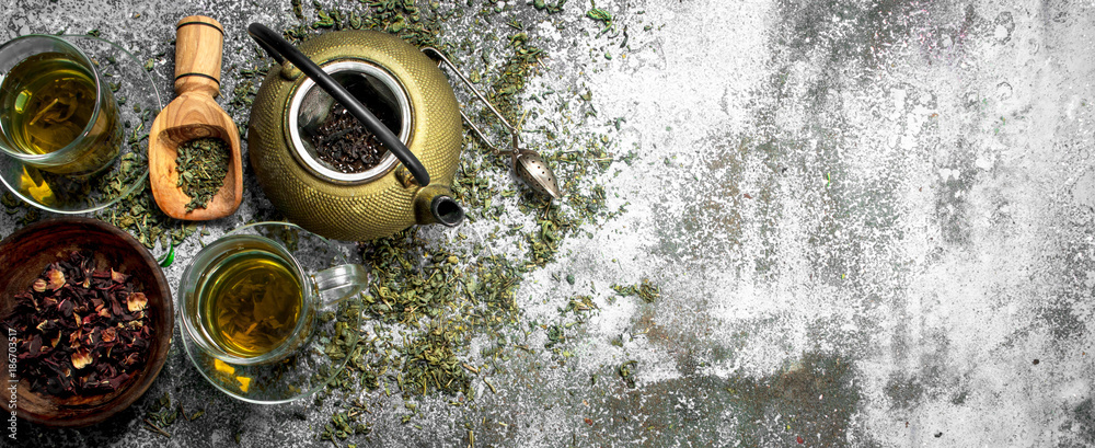 Green tea with a teapot.