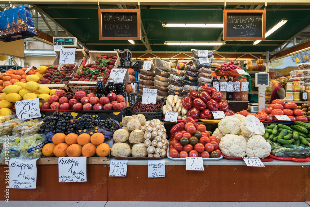 Riga, Latvia - April 2, 2017: Riga Central Market Vegetables pavilion. Riga Central Market is Europe's largest market and bazaar.