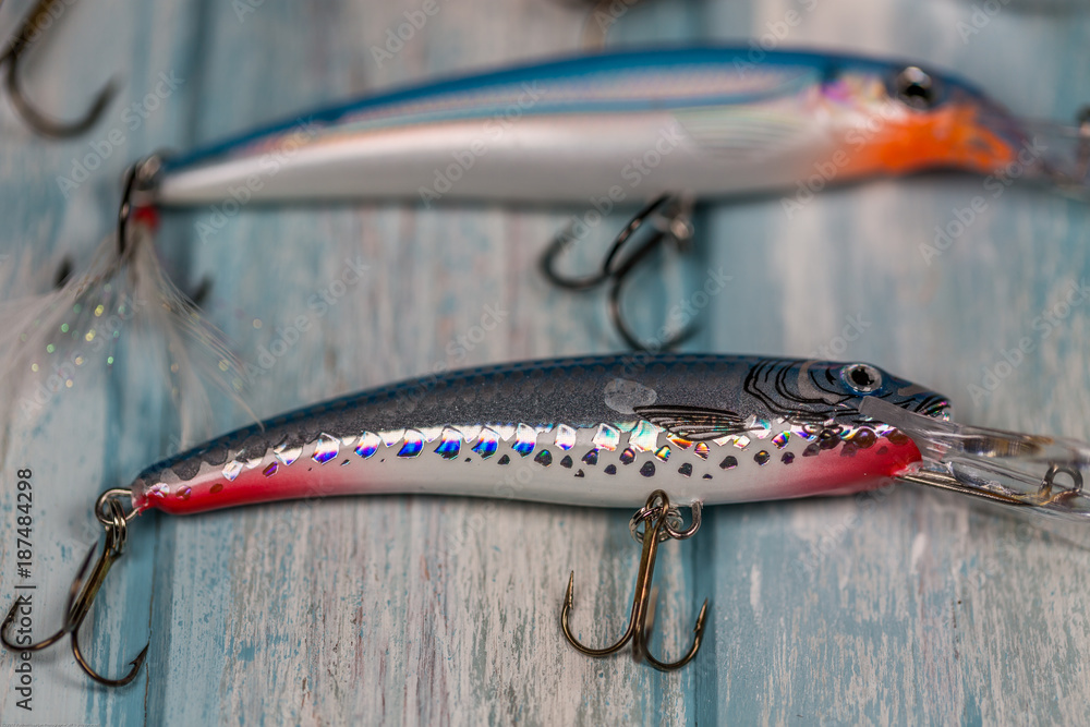 Lures On Wooden Background.Selective Focus