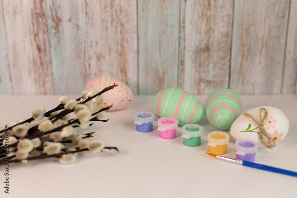 Blooming willow in nature. Branches of blooming willow