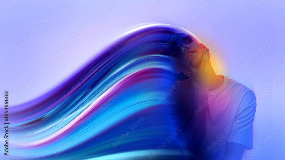 Dynamic Blue Geometric Abstraction with Overlapping Shapes . Black dark navy blue abstract pattern background. Geometric shape. Line triangle angle fold polygon diamond Color gradient
