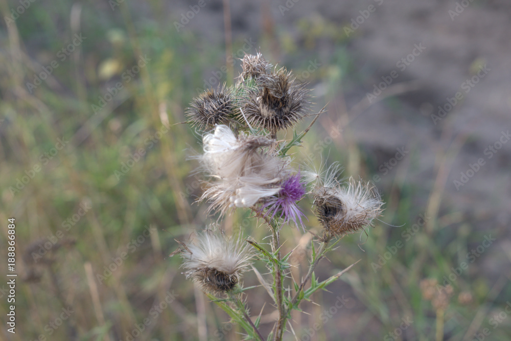 Mature Thistle, crumbles to fluff. profuse flowering with many flowers. Autumn changes