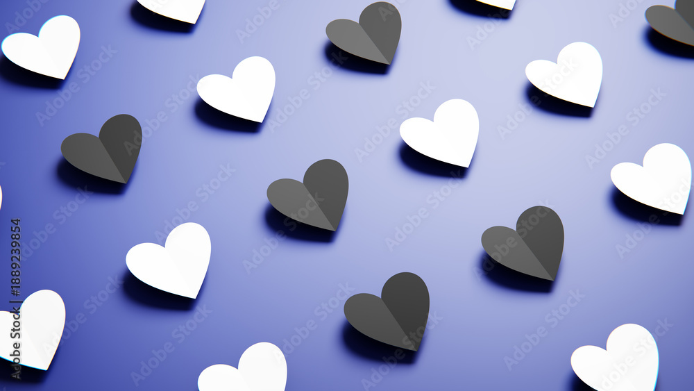 Delicate blue paper hearts layered on a vibrant red background, symbolizing love and affection