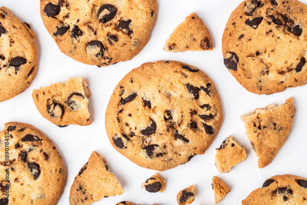 Chocolate chip cookies isolated on white background