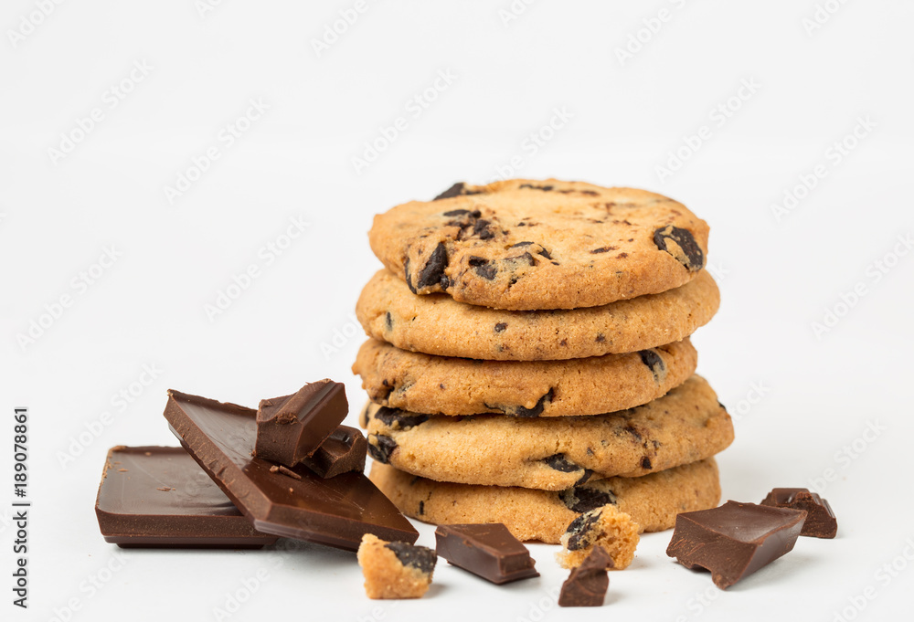 Chocolate chip cookies isolated on white background