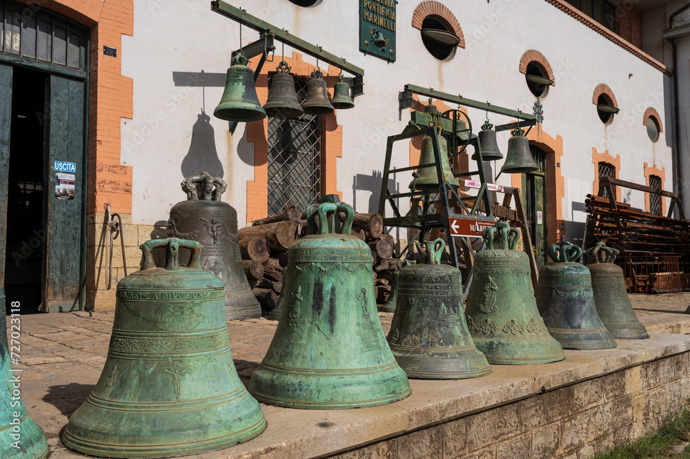 Beautiful sunset over Trasimeno lake (Umbria), with sun coming down behind an island and some fishing nets in the foreground