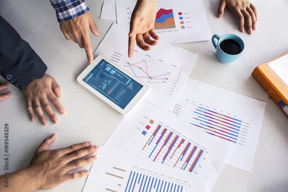 Businessman making presentation with his colleagues and business tablet digital computer at the office as concept
