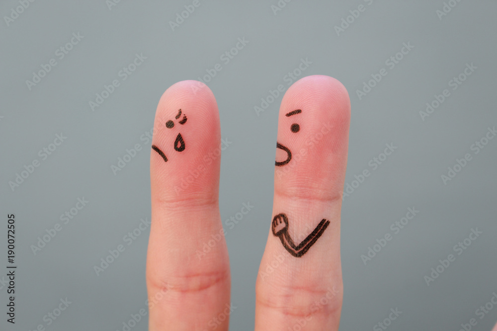 Fingers art of family during quarrel. Concept of husband shouts on wife