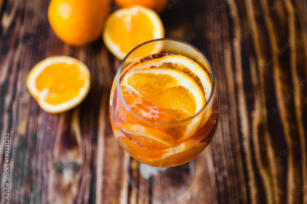 bright orange cocktail with wine, champagne and fresh juice