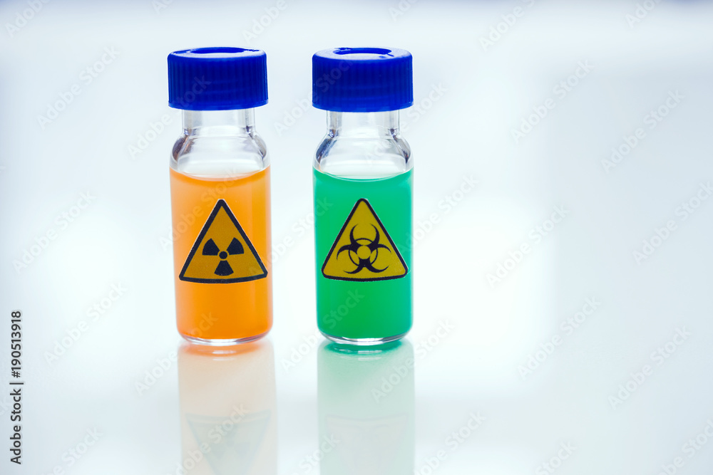 biologically dangerous substance in a syringe and a test tube on a table in a chemical laboratory