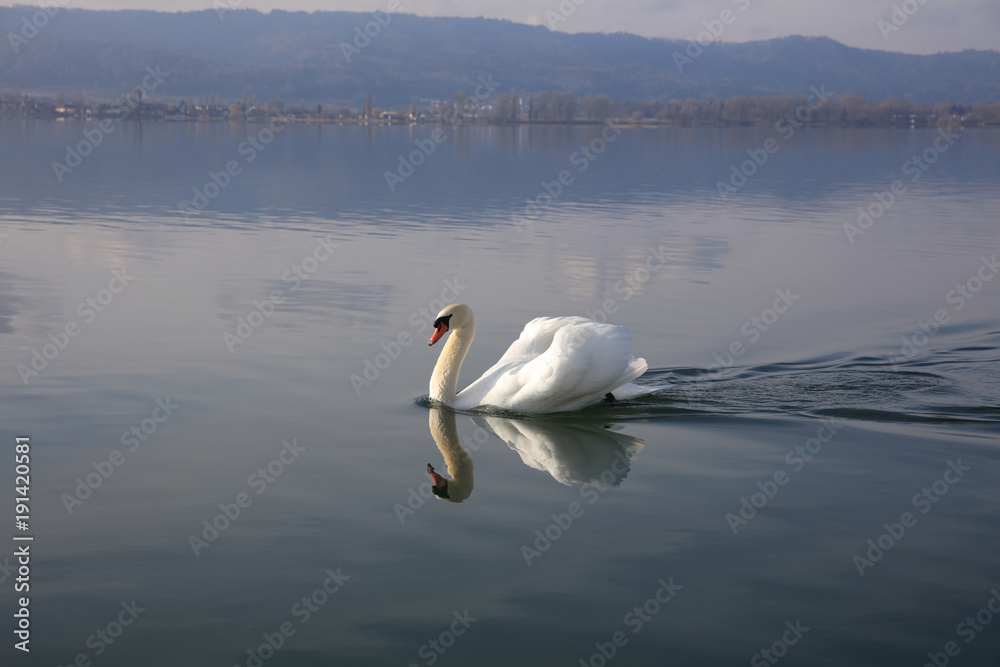 Swan (Cygnus) on Lake Constance in Germany. Europe