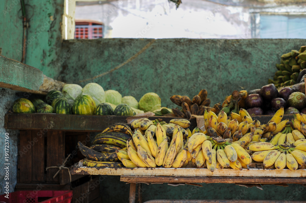 Fruit and vegetables stand at a local market in Neptuno street, Havana, Cuba