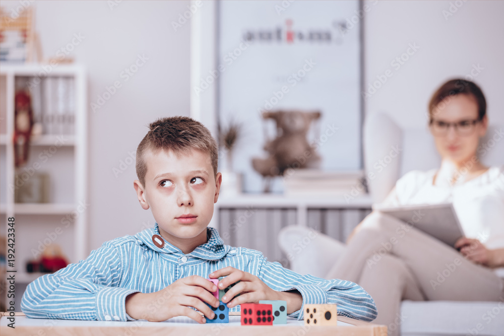 Boy playing with dice