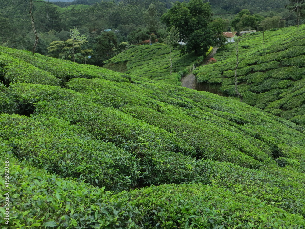 Vue de près d'une plantation de thé au kerala (inde)