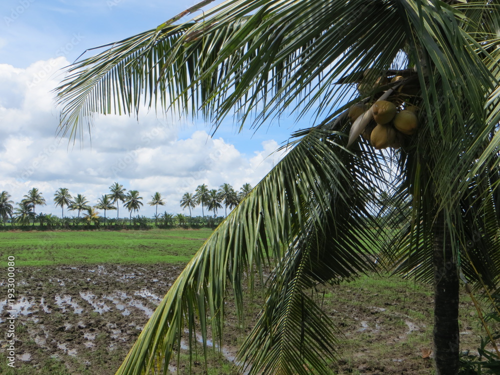 Un palmier devant une rizière à Allappuzha (kerala, inde)