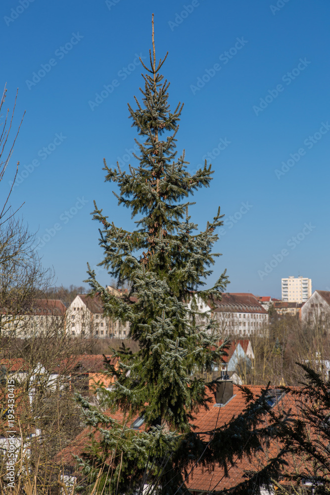 Große Fichte im Wohngebiet