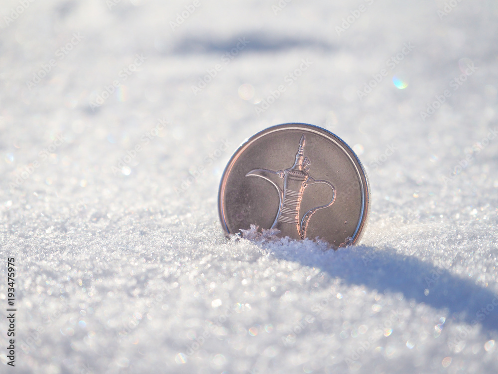 Coins dirhams in the snow.