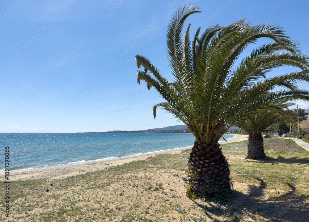 Stone tunnel passage inside the Old Fortress in Corfu Old Town, Greece. A bright exit over cobblestone path