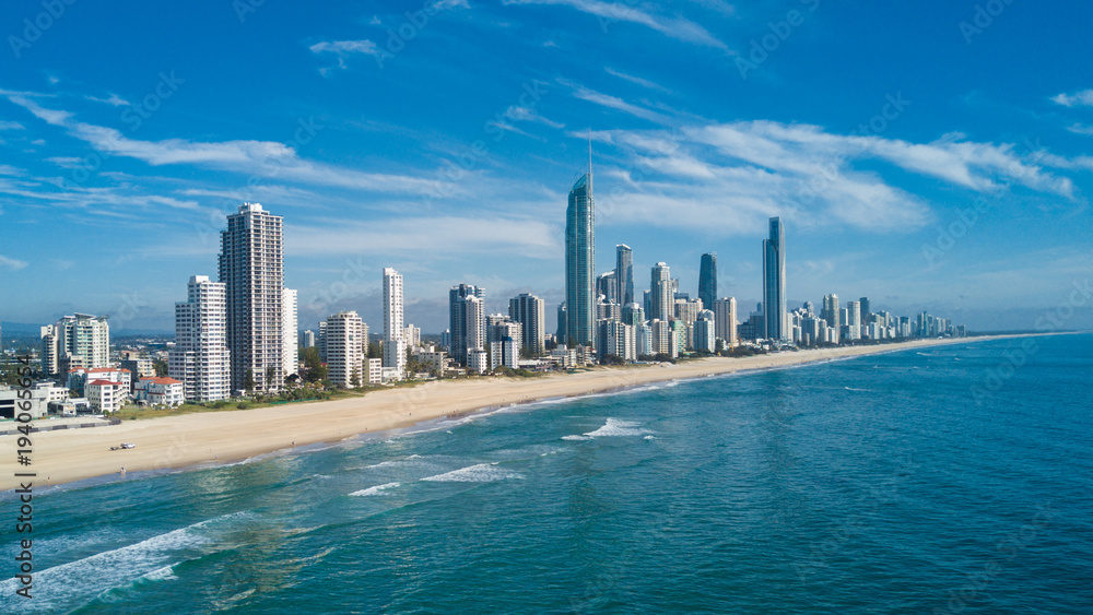 Aerial view of Gold Coast at sunrise, Queensland, Australia