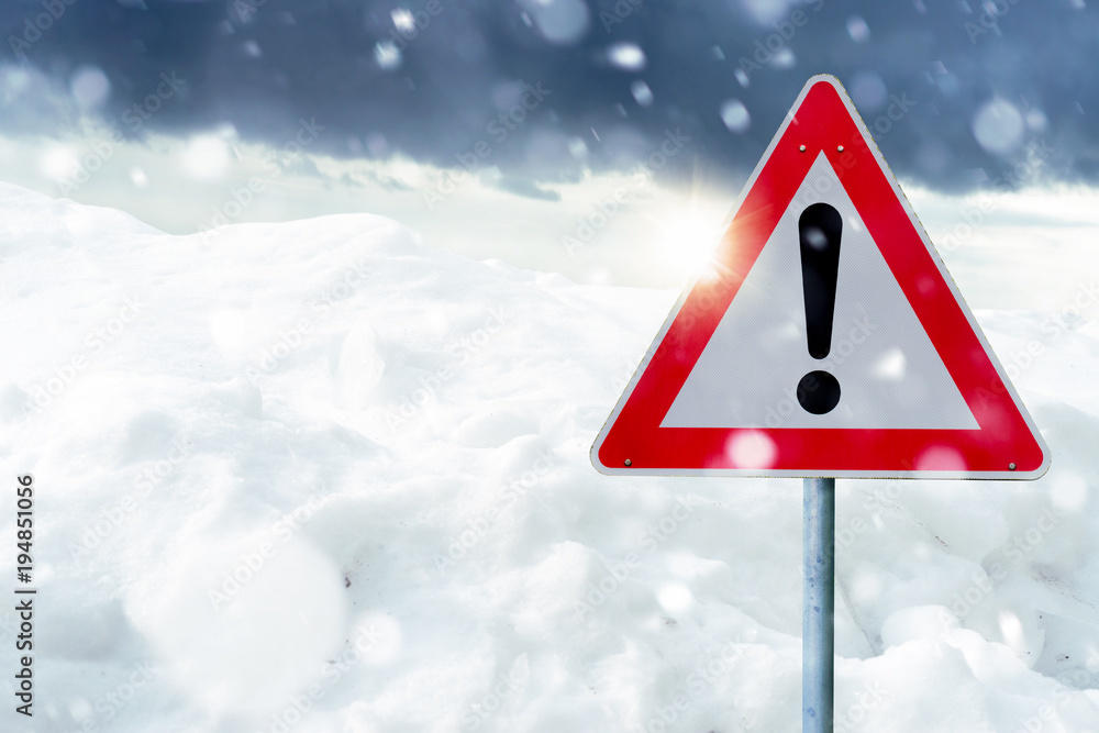 Verkehrsschild warnt vor Schnee und Glatteis auf der Straße