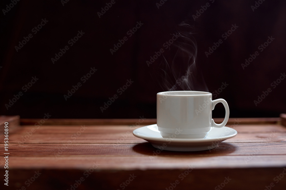 Чашка кофе на деревянном коричневом фоне