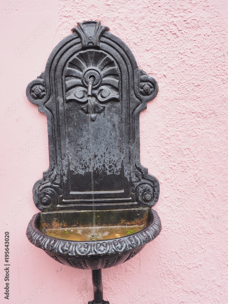 laufender Kleinwasserbrunnen mit Münzen in Reykjavik, Island
