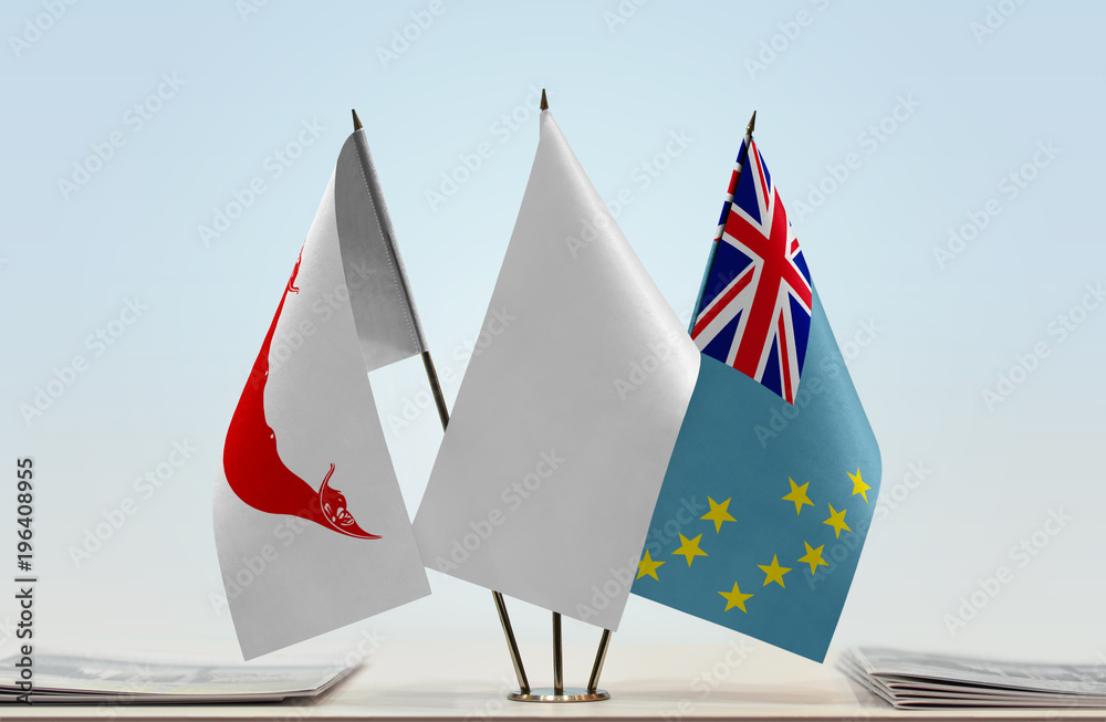 Flags of Easter Island and Tuvalu with a white flag in the middle
