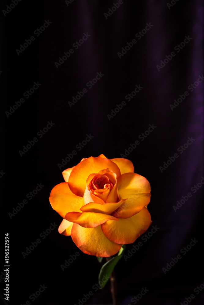 Yellow and orange rose on black