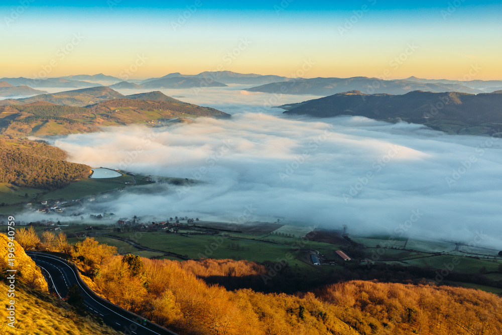 Dawning under the fog and a frost the valley of Orduña, Spain