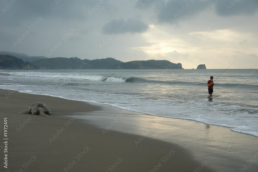 the fisherman. sunset on pacific ocean. ecuador