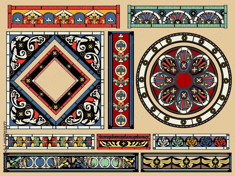 Antique Cathedral-Inspired Glass Kit - Borders Frames Backgrounds & Elements
